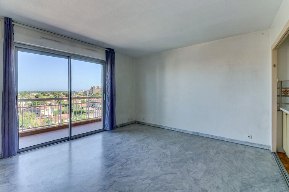 En centre ville de MANDELIEU, Studio en étage de 27m² refait à neuf en peinture comprenant : une entrée, une salle de douche avec WC, une pièce principale avec placards, ouvrant sur balcon, un coin cuisine aménagée (hotte, plaques), une cave. eau chaude et eau froide inclus dans les charges. Disponible tout de suite.
