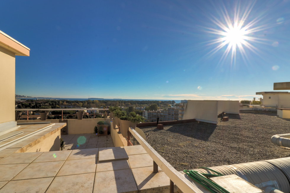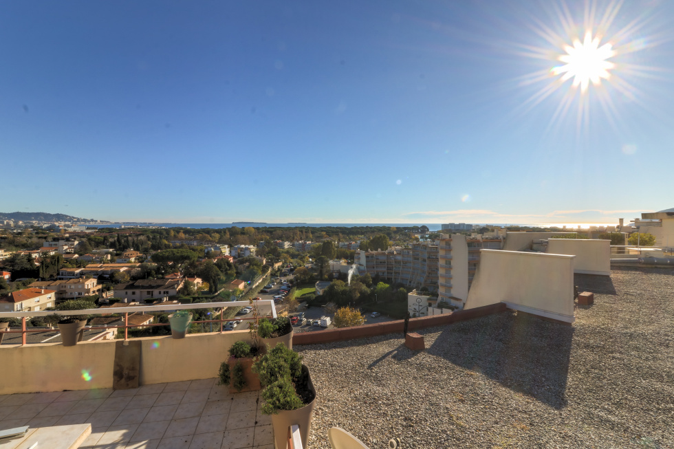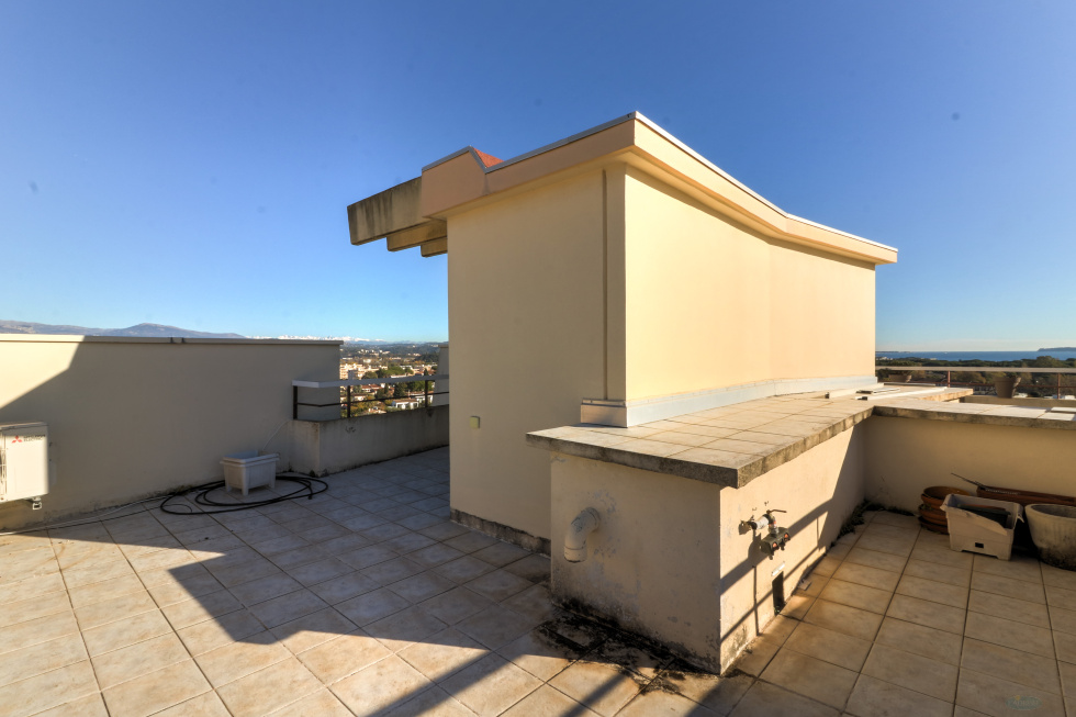 Au sein de l'ensemble Cannes Marina, secteur recherché pour sa proximité des commerces, plages, avec une marina au milieu, bel appartement 3P au 9ème et dernier étage de 69 m², composé d'une entrée avec placards, un séjour avec double expo N/E, une cuisine indépendante, deux chambres, une salle de bains, un WC indépendant. La particularité de cet appartement est qu'il offre en plus deux deux terrasses côté séjour et chambres, un accès à une terrasse sur le toit de l'immeuble avec vue à 360°, ensoleillée toute la journée. Etat d'usage, calme et lumineux, vendu avec un garage double en sous-sol et une cave.