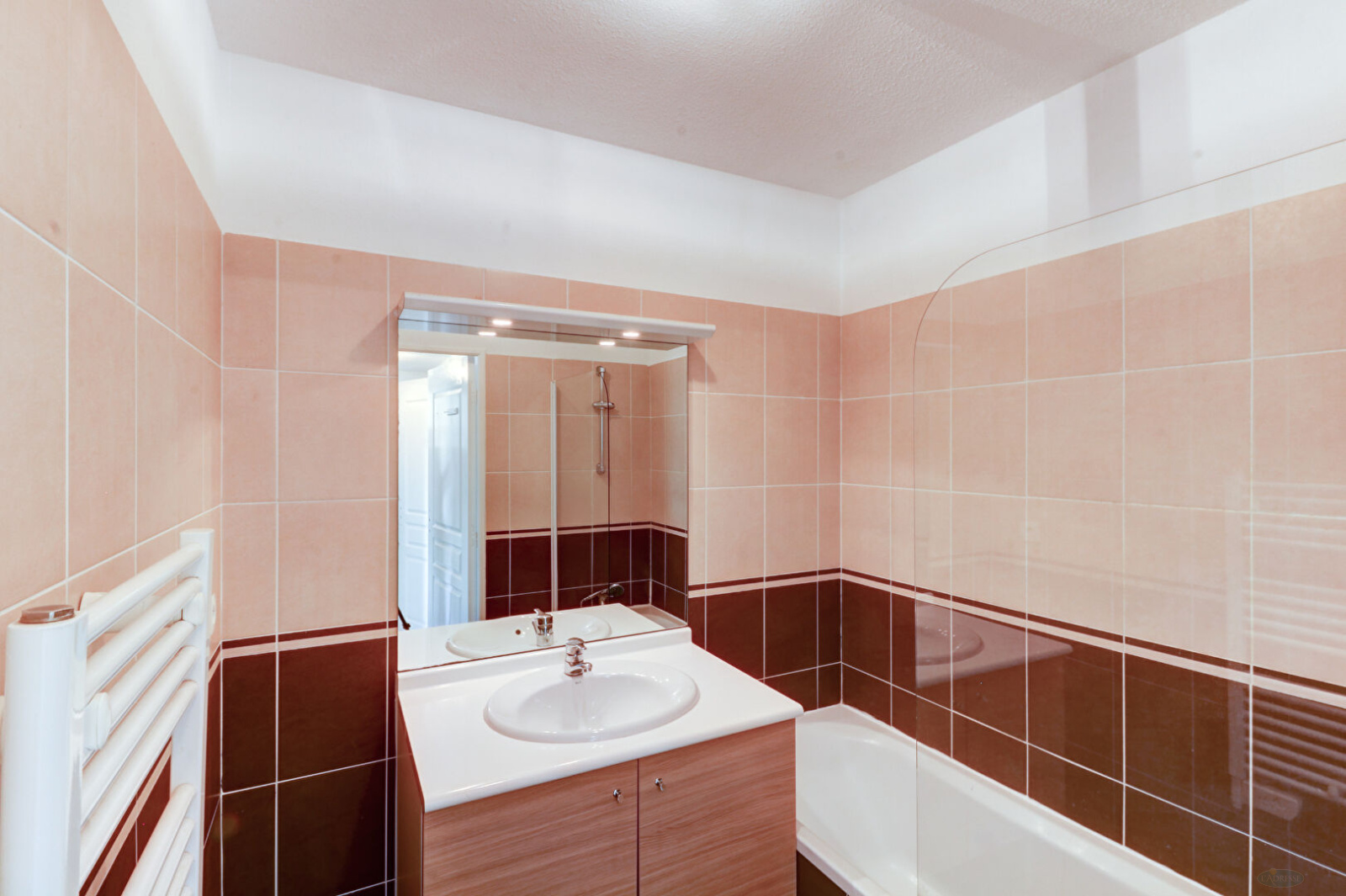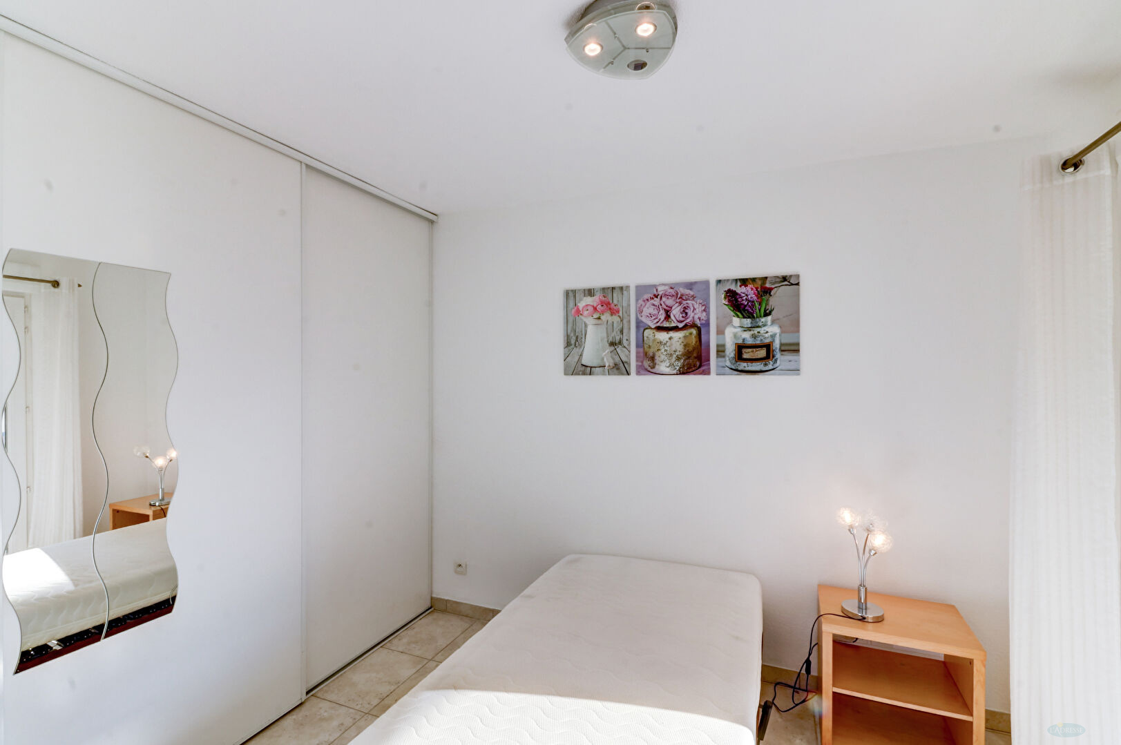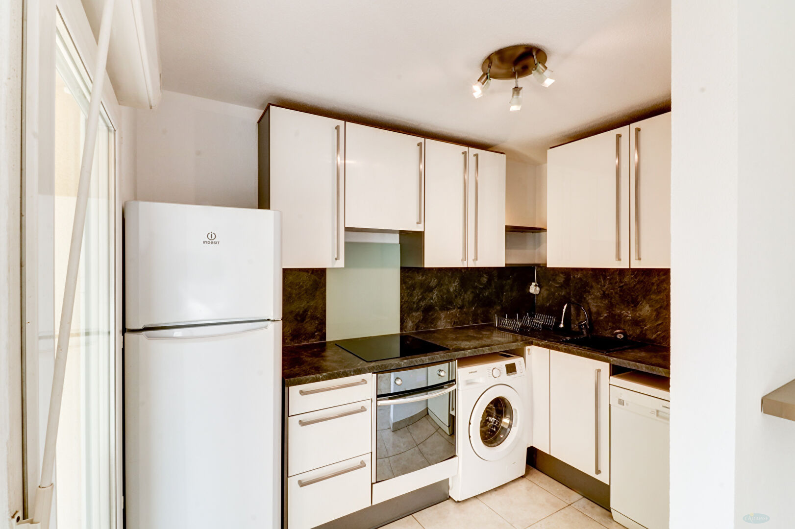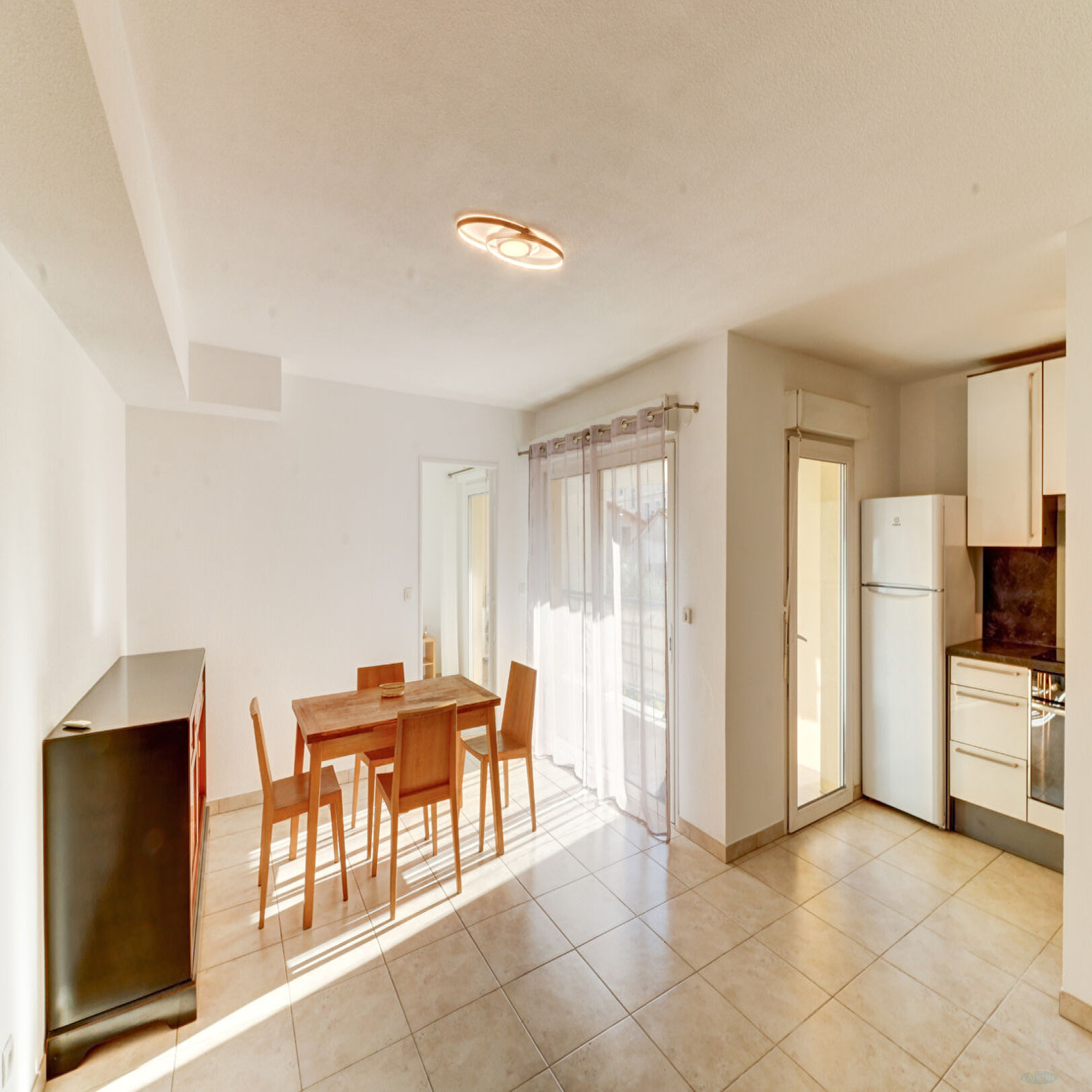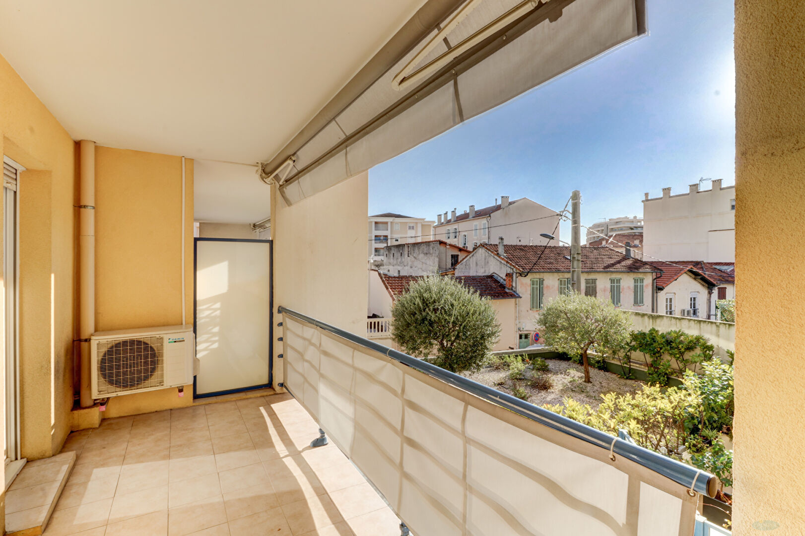 En Centre ville de Cannes La Bocca, 3P vide, climatisé avec quelques meubles, de 61.36 m2 au 2ème étage dans résidence récente au calme comprenant une entrée, un WC indépendant, un séjour avec cuisine américaine entièrement équipée ouvrant sur terrasse, dégagement avec placards, deux chambres avec placards, une salle de bains. Un garage fermé. Eau froide compris dans les charges sur compteurs. Disponible le 19/02/2026.