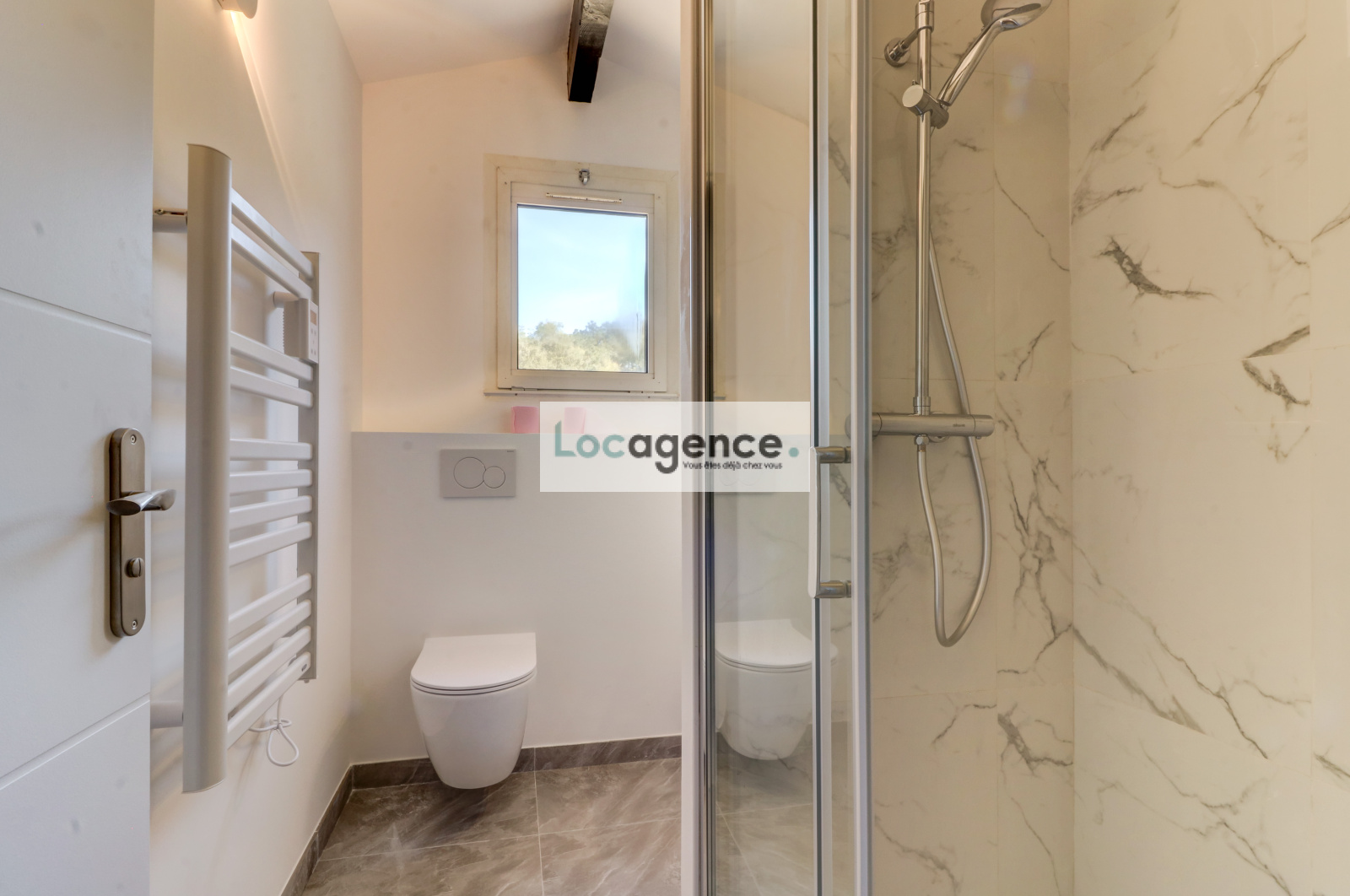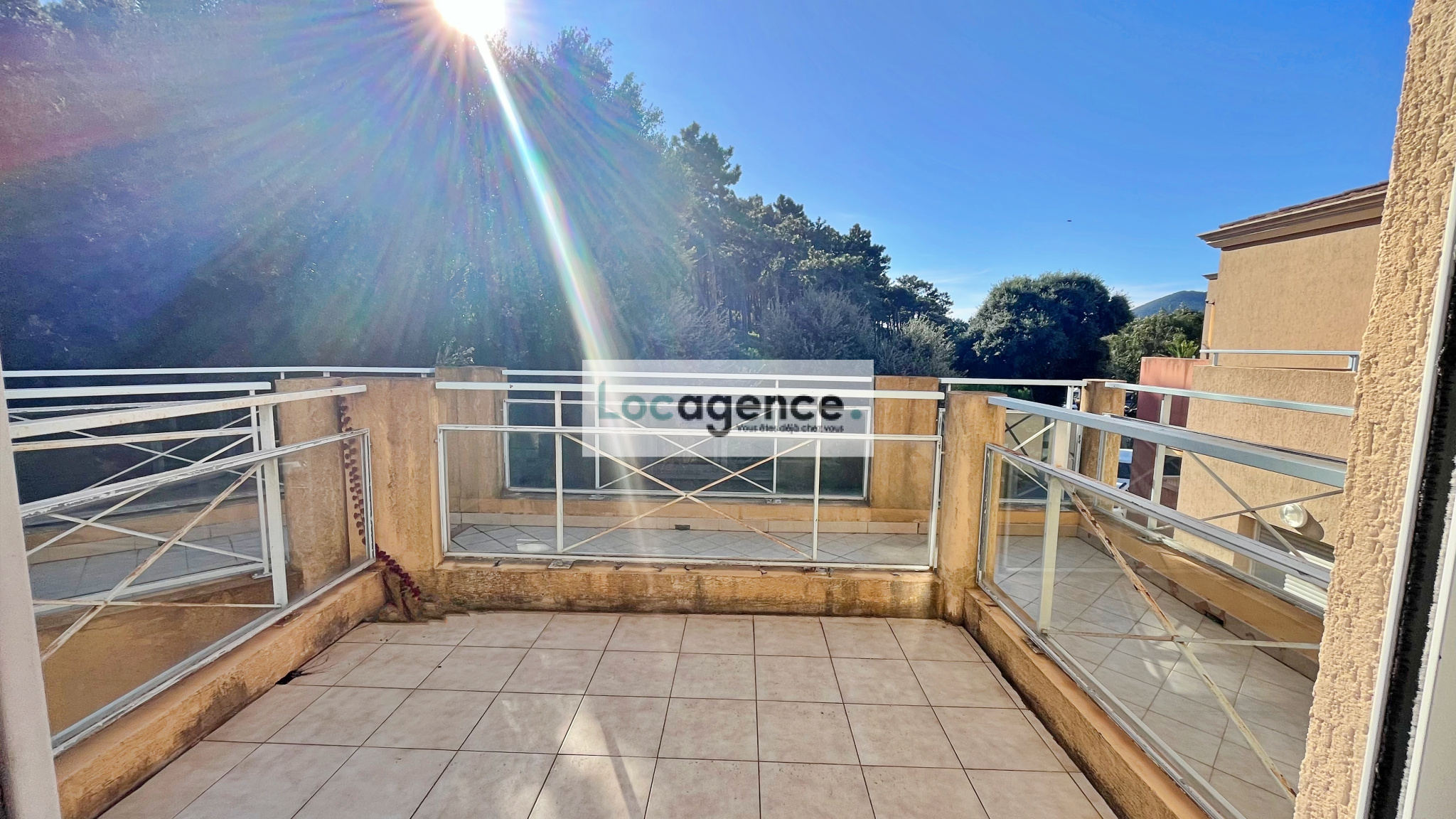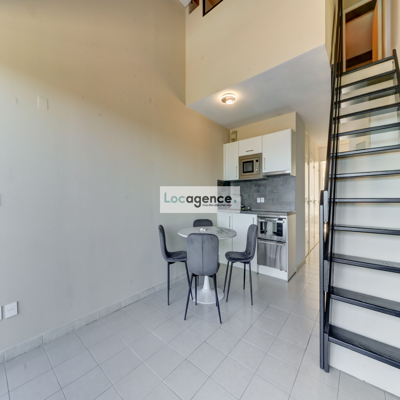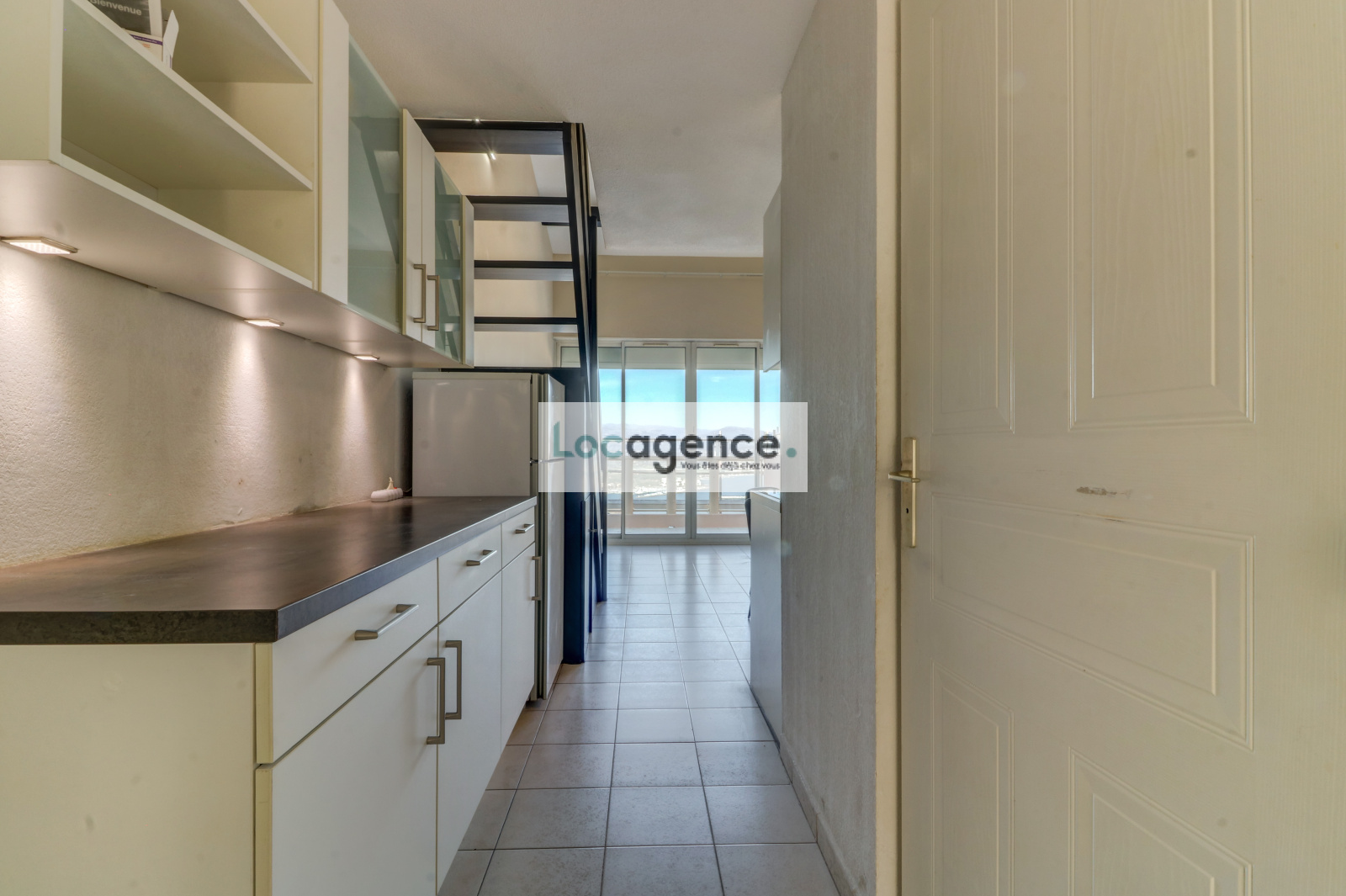 Dans résidence sécurisée avec gardien et piscine, Magnifique 3 pièces meublé en duplex entièrement climatisé comprenant : une entrée, un séjour/cuisine ouvrant sur balcon de 6m² puis sur une terrasse de 44m², une cuisine américaine équipée ( hotte, plaques, four, lave-vaisselle, réfrigératuer, congélateur, micro-ondes), une chambre avec placards, une salle de douche, un wc indépendant et une buanderie.