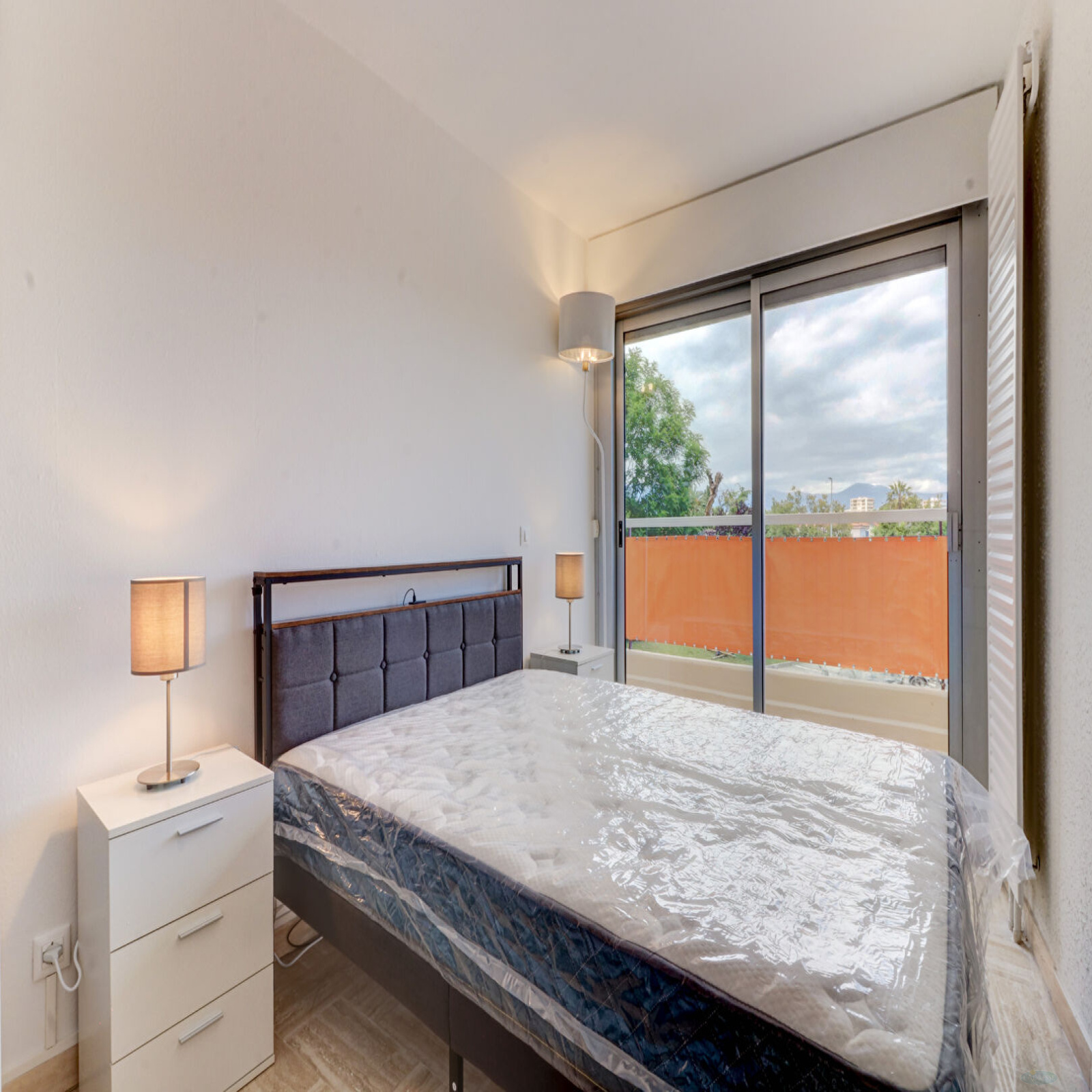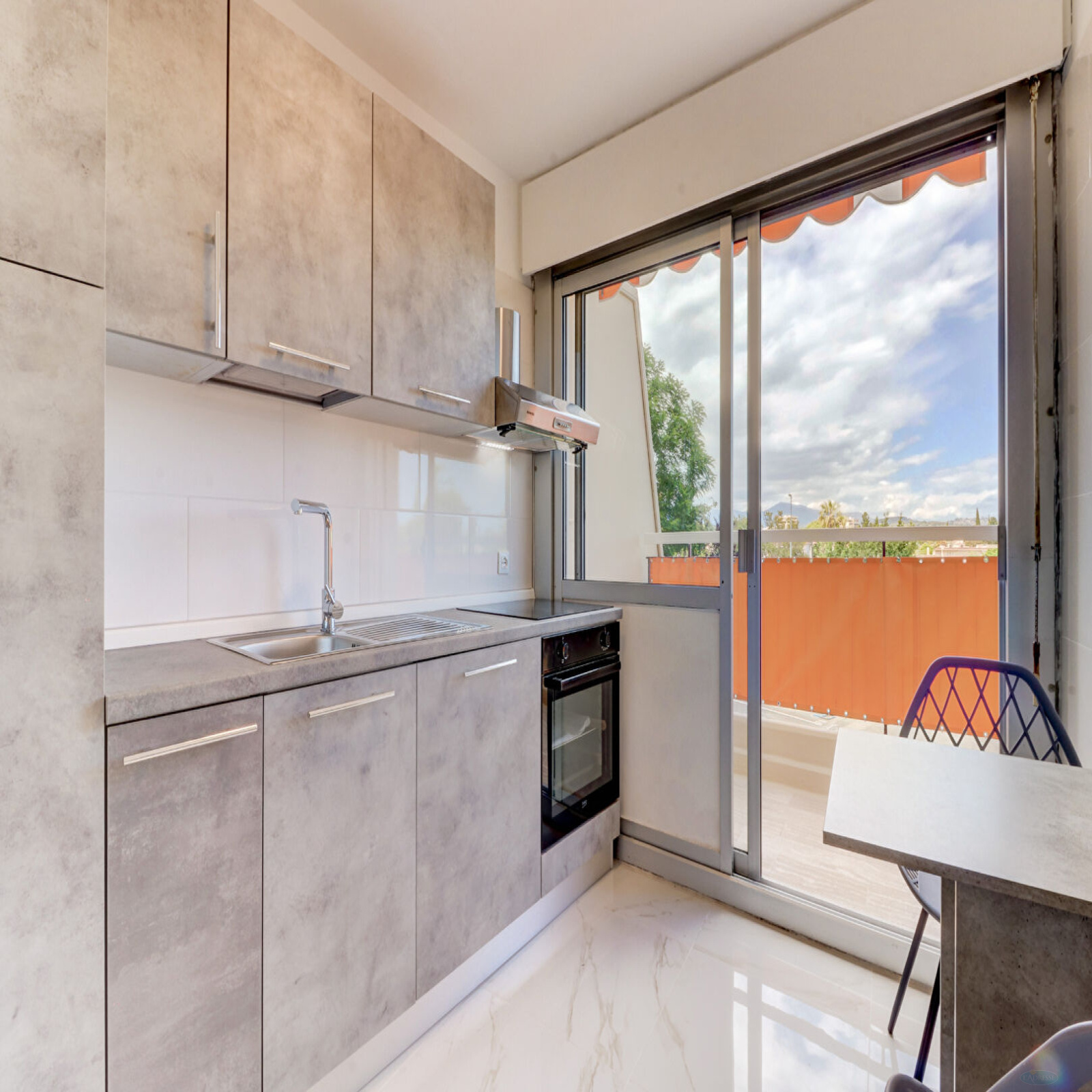 Cannes Marina, Dans résidence sécurisée avec gardien et piscine, appartement 2 pièces entièrement rénové au 1er étage, comprenant une entrée avec deux grands placards, un séjour ouvrant sur terrasse, une chambre avec placards, une salle de douche avec lave-linge, une cuisine indépendante équipée (hotte, plaques, four, réfrigérateur/congélateur, lave-vaisselle), un WC indépendant. Chauffage et eau compris dans les charges sur compteurs. Un parking privatif extérieur et une cave.