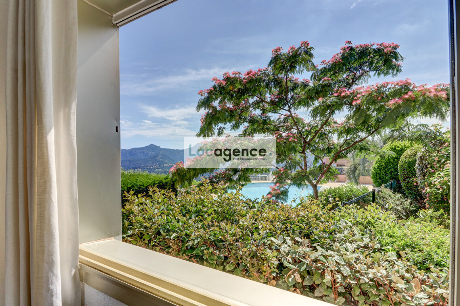 Au coeur du Domaine du Grand duc, sécurisé avec gardien, piscine, beau Studio de 38m² en duplex sans terrasse, comprenant une entrée avec placards, une salle de douche avec WC, à l'étage une pièce principale avec coin nuit et coin repas, une cuisine indépendante équipée. Un parking sous-sol. Belle vue dégagée sur la piscine et l'Estérel.